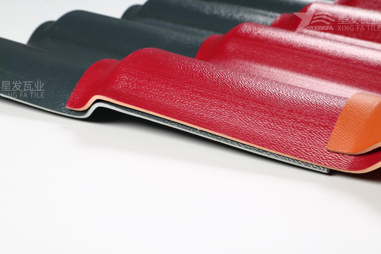 合成樹脂瓦通常由兩層構(gòu)成:上層為抗紫外線和抗老化層,下層為抗沖擊和耐腐蝕層。上層一般由ASA樹脂(丙烯酸酯-丙烯腈-苯乙烯共聚物)制成,具有優(yōu)異的耐候性和抗紫外線性能,可以有效延長合成樹脂瓦的使用壽命。下層則由PVC(聚氯乙烯)和其他補助材料組成,可以提供合成樹脂瓦的抗沖擊性、耐腐蝕性和其他物理性能。通常,這兩層是通過共擠合成的方式制成,以確保它們的緊密結(jié)合和性能協(xié)調(diào)。