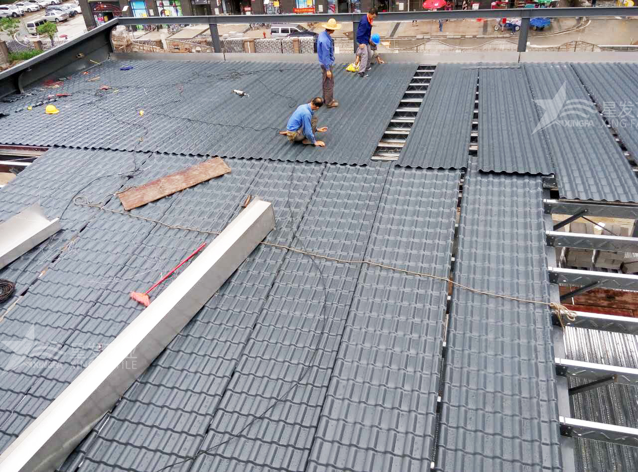首先把樹脂瓦破裂的位置,用細(xì)砂紙輕輕打磨,打磨至樹脂瓦光滑細(xì)膩,然后用干抹布擦拭灰塵,再用防水膠均勻的涂在樹脂瓦破裂的位置,輕輕擠壓到位。