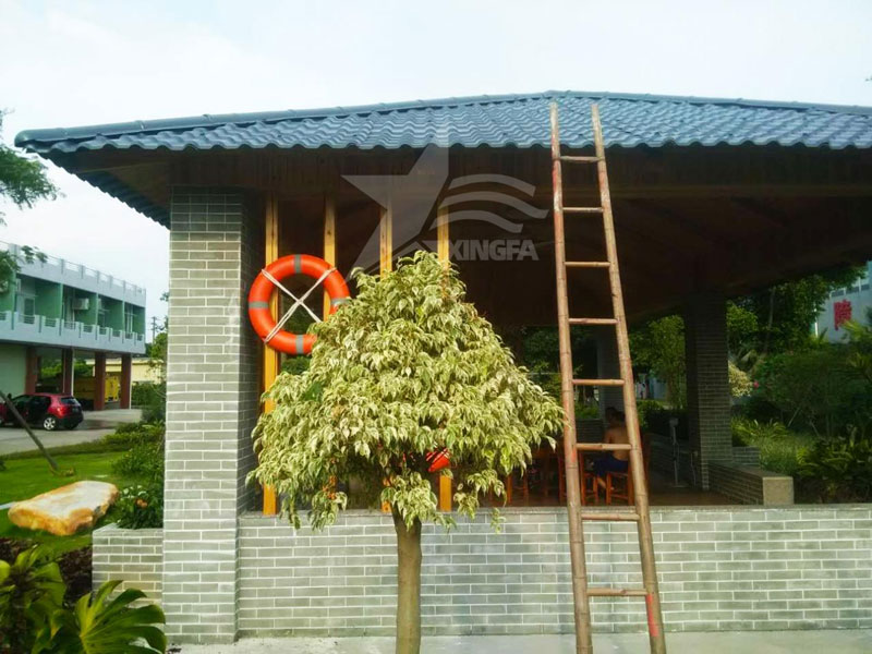 就安全性而言,樹脂瓦表面光滑,容易清潔,只需雨水沖刷即可使其保持干凈,且不容易積雪。盡管樹脂瓦本身相對輕盈,但其獨特的連接設(shè)計能夠在惡劣天氣條件下保持牢固,即使在臺風(fēng)等極端情況下也難以受損。因此,選擇樹脂瓦覆蓋木屋結(jié)構(gòu)不僅可以增強屋頂?shù)陌踩?,還能夠提供美觀和耐久的保護。