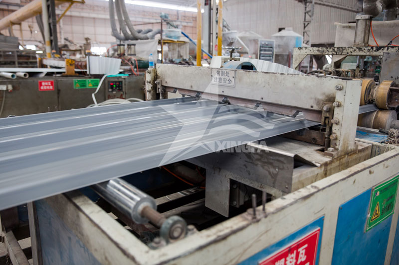 擠出成型后的片材需要經(jīng)過一系列的后續(xù)加工才能成為我們常見的樹脂瓦。首先是對擠出成型后的片材進(jìn)行切割,使其長度符合實際需求。然后,對切割好的片材進(jìn)行壓型,即將其放置在模具上,通過加熱和壓力使其形成波浪形的表面。這一步的目的是使樹脂瓦表面呈現(xiàn)出自然的瓦楞紋理,提高其美觀度和抗壓性能。壓型好的片材進(jìn)入恒溫恒濕的設(shè)備中進(jìn)行固化,使其內(nèi)部的PVC分子鏈逐漸交聯(lián),從而提高其硬度和強度。