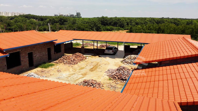 合成樹脂瓦與鋼板在縱向搭接時,最小必須有200mm的重疊,并貼置兩條止水帶。這樣的設計不僅增強了結構的牢固性,還有效預防了漏水問題。
